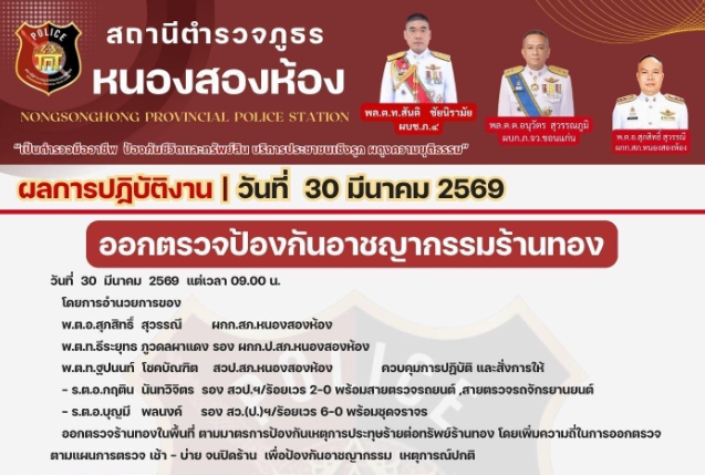 ออกตรวจป้องกันอาชญากรรมร้านทองในพื้นที่