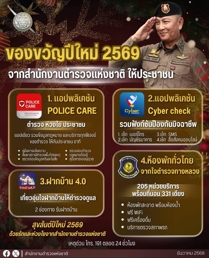 สำนักงานตำรวจแห่งชาติ มอบความห่วงใยและความปลอดภัยให้ประชาชนตลอดช่วงเทศกาลปีใหม่ ผ่านบริการและแอปพลิเคชันสำคัญที่ช่วยอำนวยความสะดวก ดูแล และป้องกันภัยในทุกมิติ