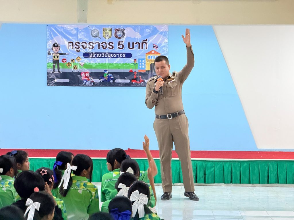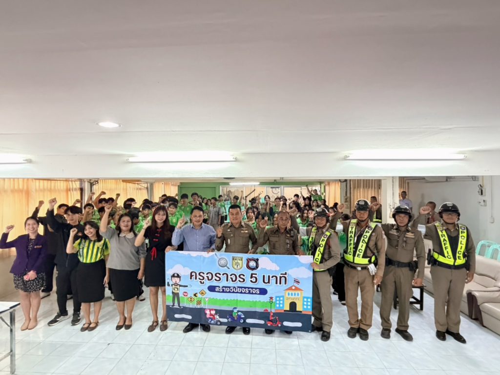 พร้อมด้วยชุดจราจร #ดำเนินโครงการครูจราจร 5 นาที บรรยายให้ความรู้