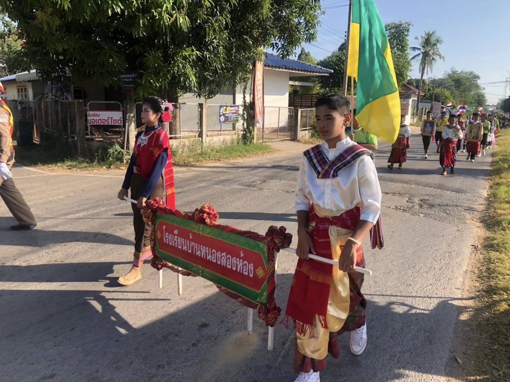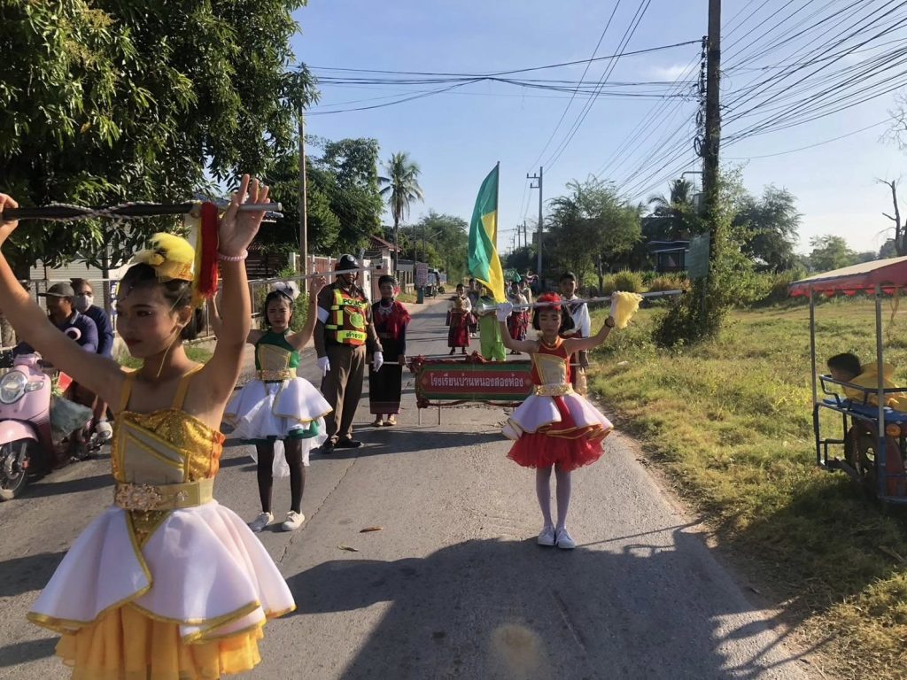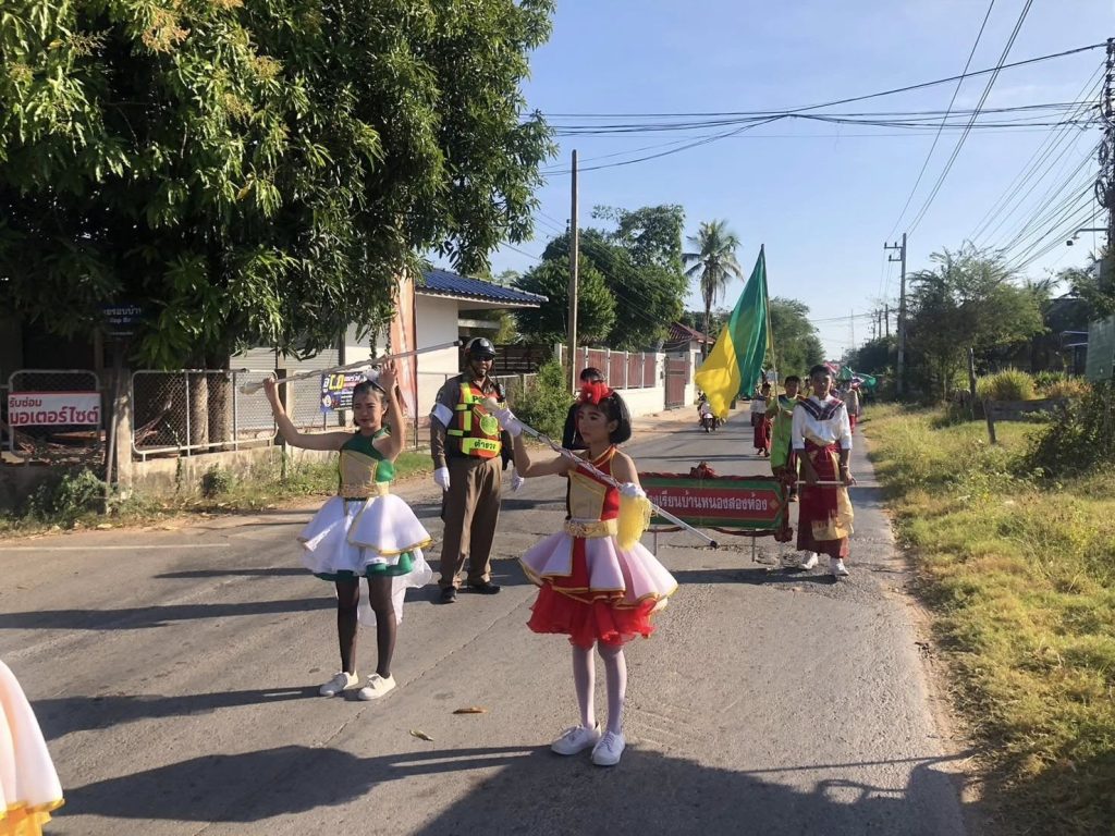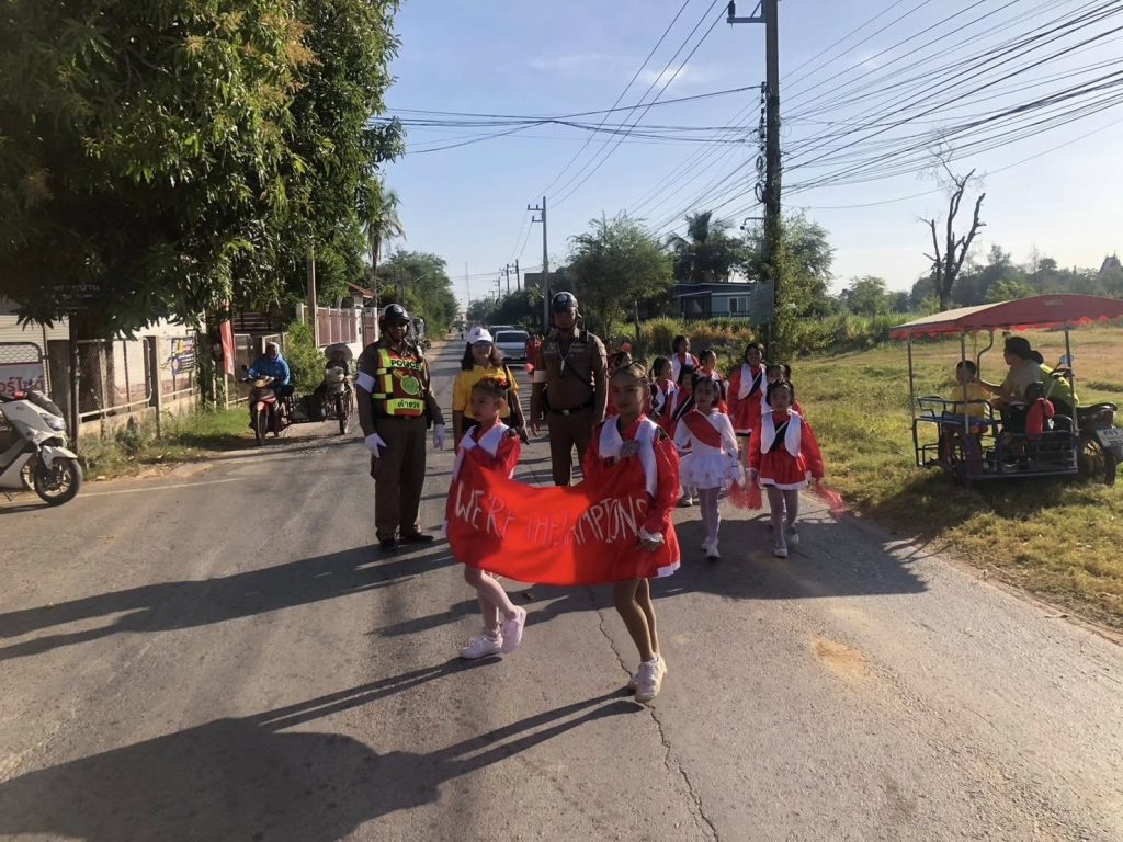 ชุดจราจร อำนวยความสะดวกด้านการจราจรให้กับขบวนพาเหรดกีฬาสีของ ร.ร.บ้านหนองสองห้อง
