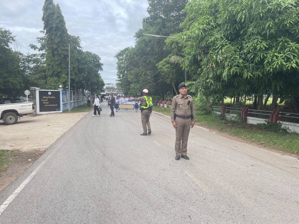 ได้มอบหมายให้ ร.ต.อ.บุญมี พลนงค์ รอง สว.(ป.)ฯ พร้อมชุดจราจร อำนวยความสะดวกจราจรขบวนเดินรณรงค์วันต่อต้านยาเสพติด โรงเรียนชุมชนหนองสองห้องคุรุราษฎร์รังสรรค์
