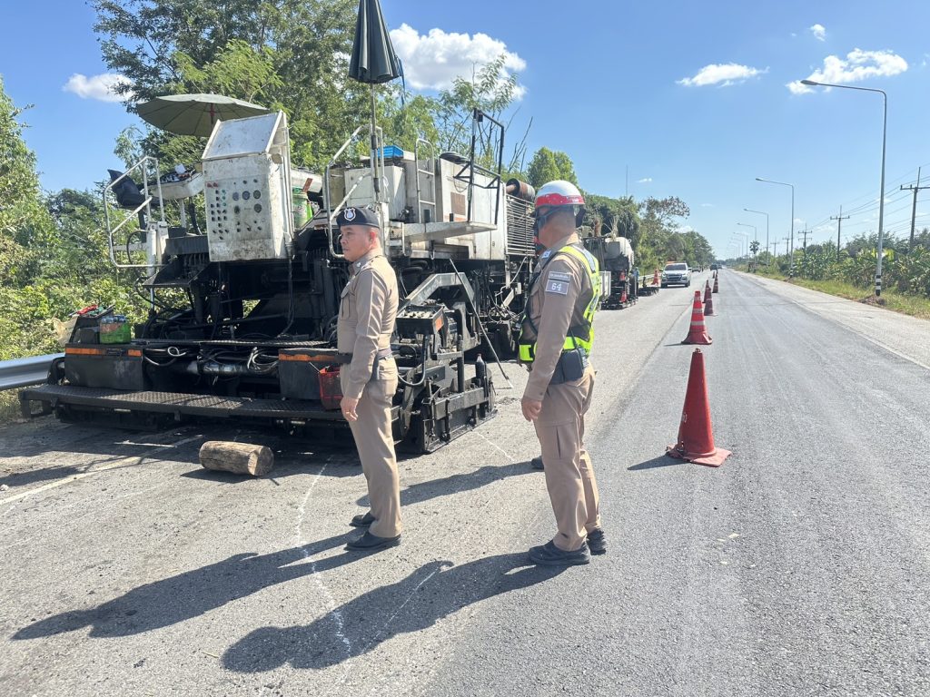 ชุดสายตรวจจราจรเวร ออกตรวจสอบเส้นทางการจราจรในพื้นที่รับผิดชอบที่มีการซ่อมสร้างพื้นผิวการจราจรช่วงเทศกาลปีใหม่ 2569