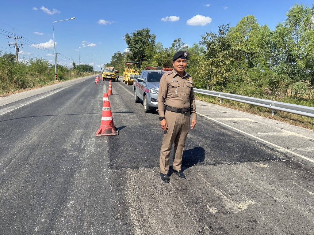 ร.ต.อ.บุญมี พลนงค์ รอง สว.(ป.)ฯ ร้อยเวร 60 พร้อมชุดสายตรวจจราจรเวร ออกตรวจสอบเส้นทางการจราจรในพื้นที่รับผิดชอบที่มีการซ่อมสร้างพื้นผิวการจราจรช่วงเทศกาลปีใหม่ 2569 ถนนหนองสองห้อง – บ้านไผ่(หินตั้ง) ทล 3201 บริเวณช่วง กม.ที่ 24-26 และช่วง กม.ที่ 29-32 ได้กำชับผู้รับเหมาก่อสร้างให้เน้นเรื่องความปลอดภัยของผู้ใช้รถที่สัญจรไปมาเป็นเรื่องสำคัญ และให้ส่งคืนพื้นผิวการจราจรที่ก่อสร้างให้ผู้เดินทางขับรถสัญจรไปมาได้โดยสะดวกปลอดภัย มิให้เกิดอุบัติเหตุจากการก่อสร้าง ซ่อมแซมถนน ในช่วงเทศกาลปีใหม่ 2569 นี้