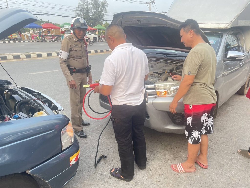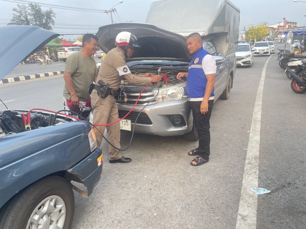 ช่วยเหลือ ประชาชนรถสตาร์ทไม่ติดบริเวณถนนหน้าร้านสะดวกซื้อ หน้าที่ว่าการอำเภอหนองสองห้อง
