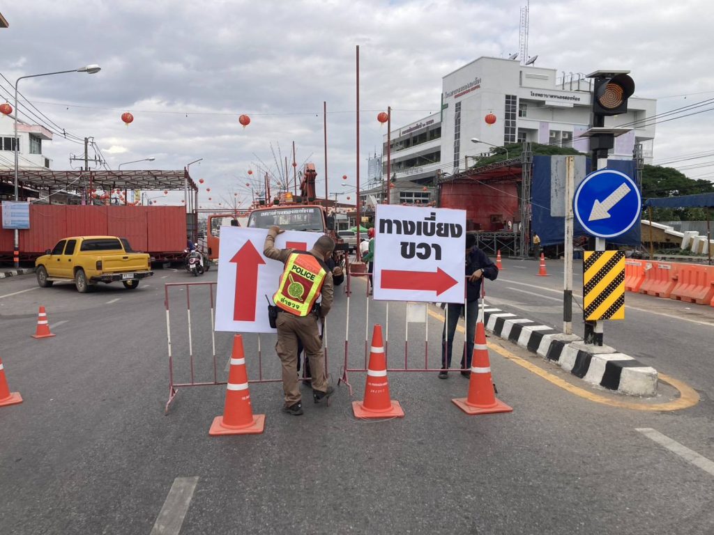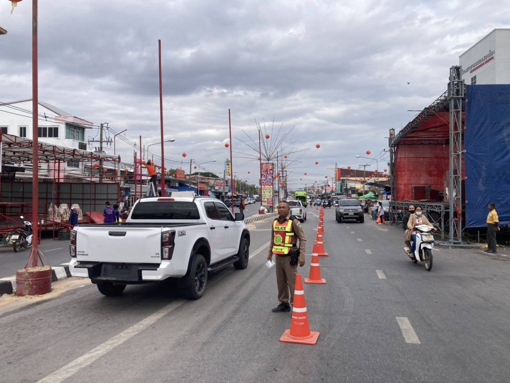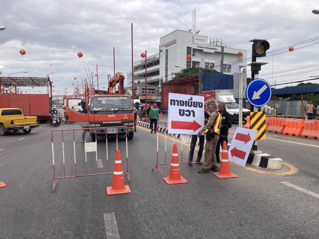 ดำเนินการจัดระเบียบการจราจร บริเวณหน้าศาลเจ้าพ่อ(ชั่วคราว)