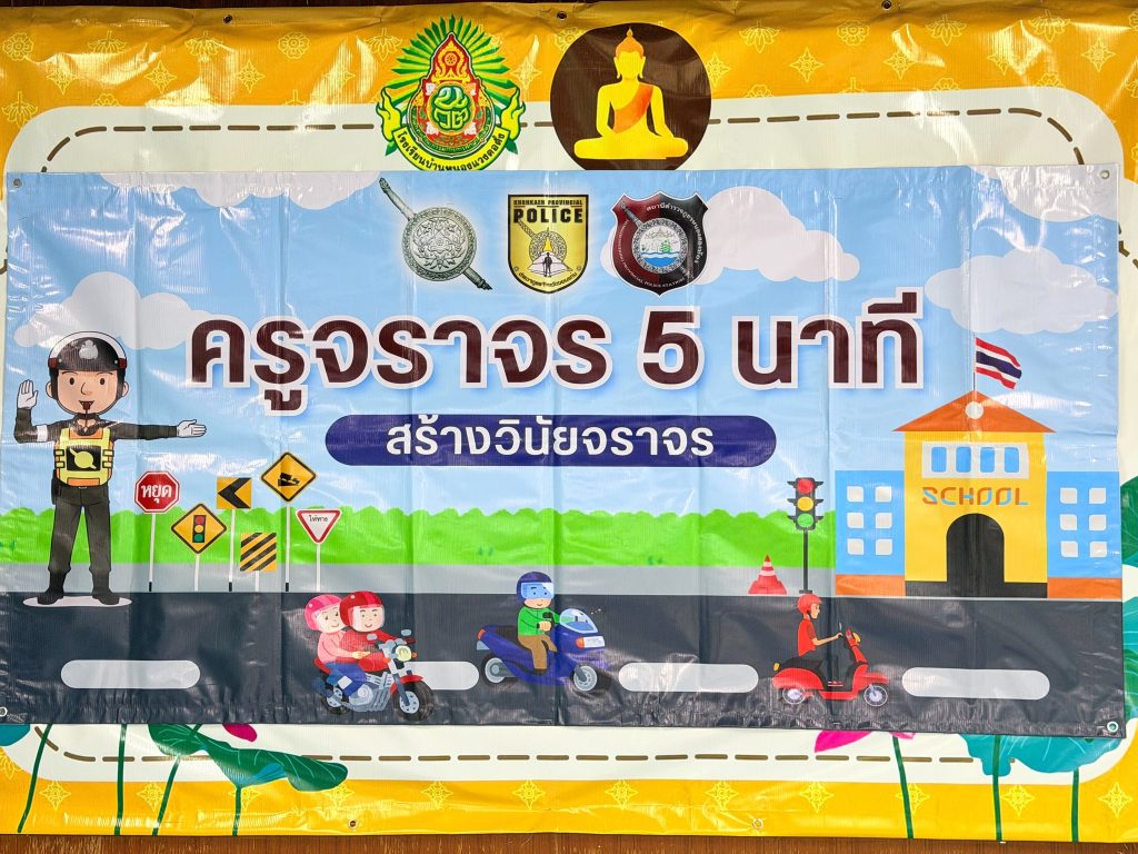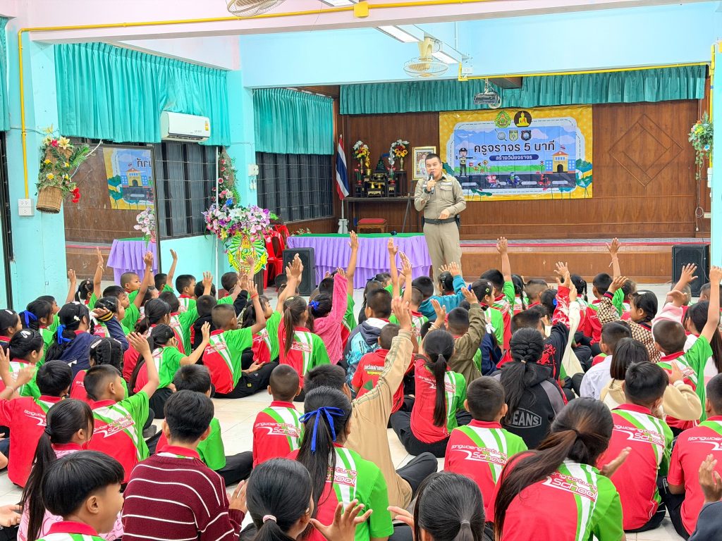 ดำเนินโครงการครูจราจร 5 นาที บรรยายให้ความรู้กฎหมายจราจร การขับขี่ปลอดภัย รักษาวินัยจราจร