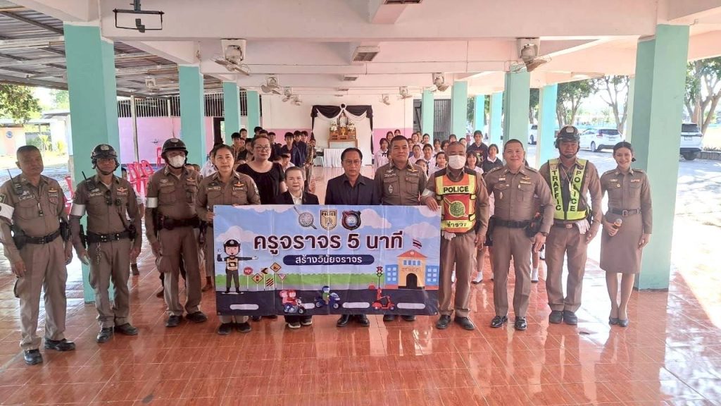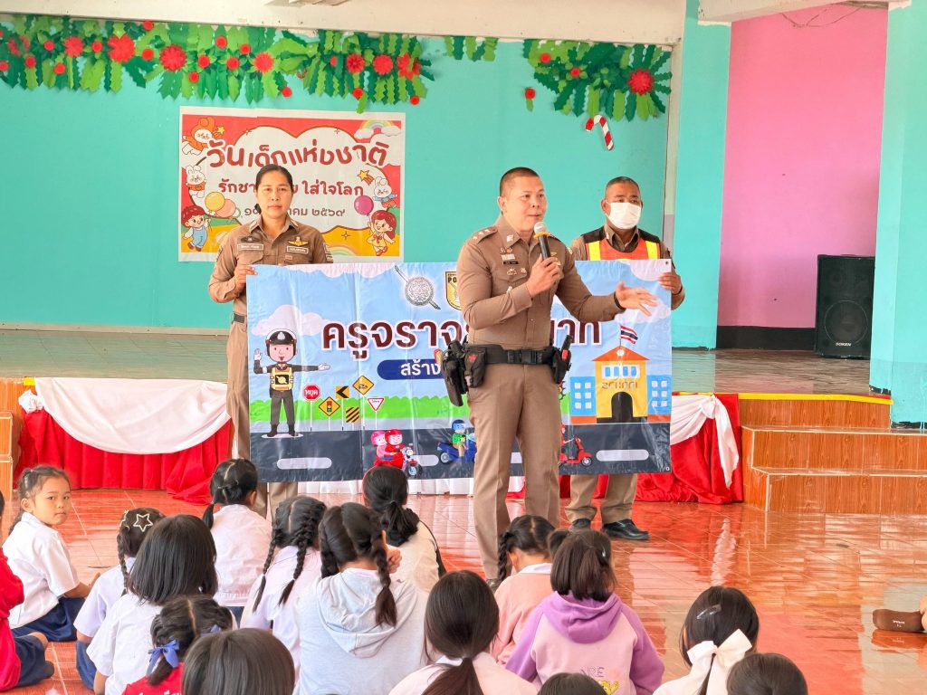 พร้อมชุดจราจร ดำเนินโครงการครูจราจร 5 นาที บรรยายให้ความรู้กฎหมายจราจร การขับขี่ปลอดภัย รักษาวินัยจราจร พร้อมกับสาธิตการใช้สัญญาณมือ/นกหวีดจราจร ณ โรงเรียนบ้านจตุคามวิทยา ต.ตะกั่วป่า อ.หนองสองห้อง จ.ขอนแก่น มีนักเรียนและคณะครูโรงเรียนจตุคามวิทยา ร่วมกิจกรรมจำนวน 80 คน