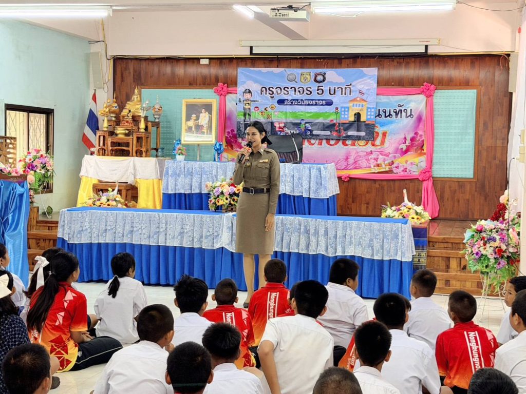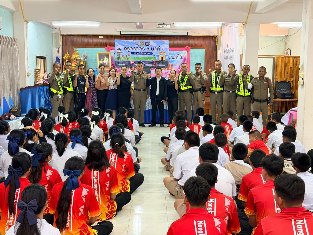 ดำเนินโครงการครูจราจร 5 นาที บรรยายให้ความรู้ โรงเรียนบ้านหนองกุงโนนทัน ต.คึมชาด