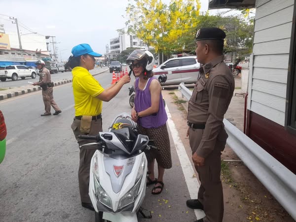ดำเนินโครงการจิตอาสาจราจร #รณรงค์การขับขี่ปลอดภัยสวมหมวกนิรภัยเพื่อลดอุบัติเหตุจราจรทางบกในช่วงเทศกาลสงกรานต์ พ.ศ.2568