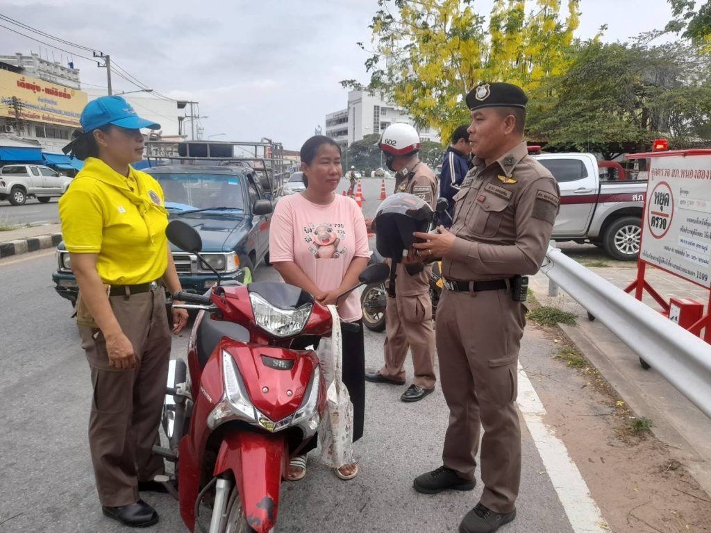 ดำเนินโครงการจิตอาสาจราจร #รณรงค์การขับขี่ปลอดภัยสวมหมวกนิรภัยเพื่อลดอุบัติเหตุจราจรทางบกในช่วงเทศกาลสงกรานต์ พ.ศ.2568 ได้มีการแจกหมวกนิรภัยแก่ประชาชนที่ขับขี่รถจักรยานยนต์ไม่สวมหมวกนิรภัย ผ่านจุดตรวจกวดขันวินัยจราจร พร้อมทั้งยังได้อบรมให้ความรู้กฎหมายจราจรเบื้องต้น การขับขี่ปลอดภัยสวมหมวกนิรภัยทุกครั้ง แก่ผู้เข้าร่วมโครงการจำนวน 5 ราย ณ บริเวณจุดตรวจสะพานลอย ถนนเจนจบทิศ ต.หนองสองห้อง อ.หนองสองห้อง จ.ขอนแก่น