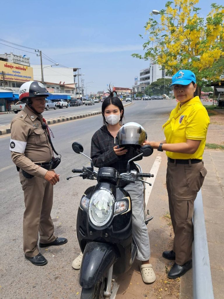 ดำเนินโครงการจิตอาสาจราจร #รณรงค์การขับขี่ปลอดภัยสวมหมวกนิรภัยเพื่อลดอุบัติเหตุจราจรทางบกในช่วงเทศกาลสงกรานต์ พ.ศ.2568 ได้มีการแจกหมวกนิรภัยแก่ประชาชนที่ขับขี่รถไม่สวมหมวกนิรภัย ผ่านจุดตรวจกวดขันวินัยจราจร พร้อมทั้งยังได้อบรมให้ความรู้กฎหมายจราจรเบื้องต้น การขับขี่ปลอดภัย สวมหมวกนิรภัยแก่ผู้เข้าร่วมโครงการ จำนวน 5 ราย ณ บริเวณจุดตรวจสะพานลอย ถนนเจนจบทิศ ต.หนองสองห้อง อ.หนองสองห้อง จ.ขอนแก่น