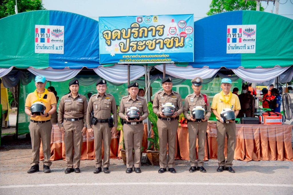 ดำเนินโครงการจิตอาสาจราจร รณรงค์การขับขี่ปลอดภัย สวมหมวกนิรภัย เพื่อลดอุบัติเหตุจราจรทางบก ในช่วงเทศกาลสงกรานต์ พ.ศ.2568 ได้มีการแจกหมวกนิรภัยแก่ประชาชนที่ขับขี่รถไม่สวมหมวกนิรภัย ผ่านจุดตรวจตลาดลานทอง พร้อมทั้งยังได้อบรมให้ความรู้กฎหมายจราจรเบื้องต้น การขับขี่ปลอดภัย สวมหมวกนิรภัยแก่ผู้เข้าร่วมโครงการ จำนวน 5 ราย ณ บริเวณจุดตรวจหน้าตลาดลานทอง ถนนเจนจบทิศ ต.หนองสองห้อง อ.หนองสองห้อง จ.ขอนแก่น