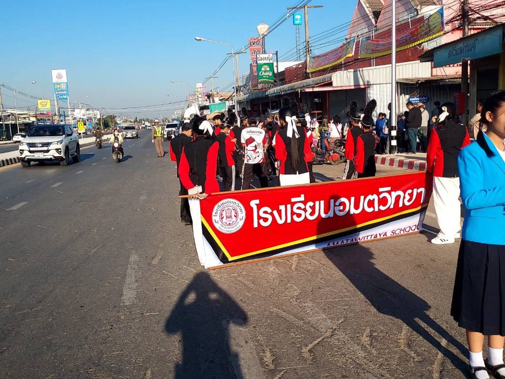 นำขบวนและอำนวยความสะดวก ด้านการจราจร ขบวนพาเหรดกีฬาสี โรงเรียน ชุมชนหนองสองห้องคุรุราษฎร์รังสรรค์