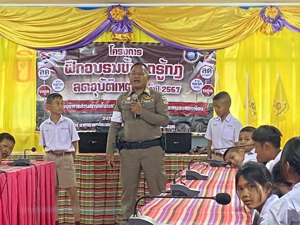 ด.ต.เสรี เทียบภา ผบ.หมู่(ป.)สภ.หนองสองห้อง ปฏิบัติหน้าที่ตำรวจจราจร/ครูตำรวจแดร์ D.A.R.E. เข้าทำการสอนนักเรียนประถมโรงเรียนในเขตตำบลโนนธาตุฯ ตามโครงการฝึกอบรม “ขับรถรู้กฏลดอุบัติเหตุ” ขององค์การบริหารส่วนตำบลโนนธาตุ ณ ห้องประชุมองค์การบริหารส่วนตำบลโนนธาตุ