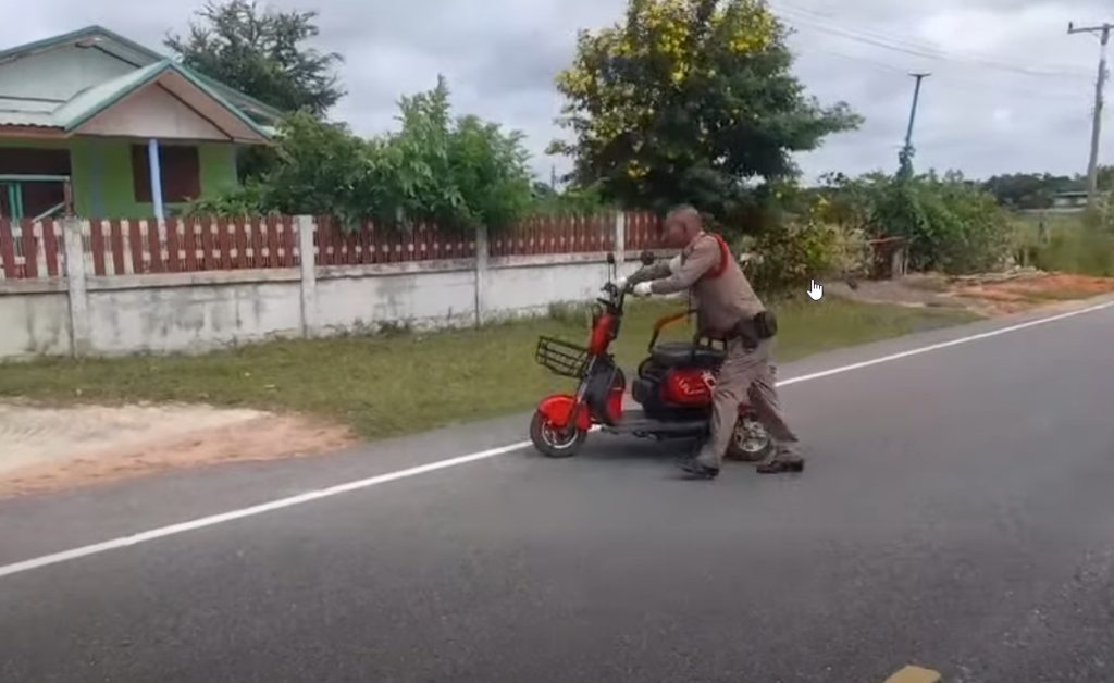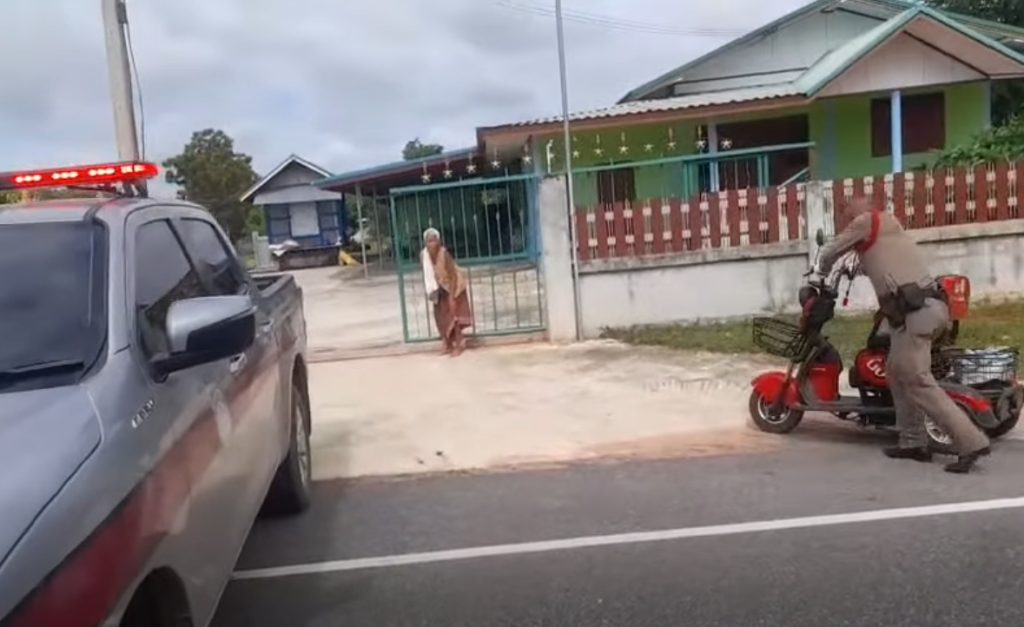 ร.ต.ต.สุวิทย์ ศรีสังข์ , ด.ต.พิชิต พรมนอก ขณะปฏิบัติหน้าที่ออกตรวจสภาพการจราจร ถนนหนองสองห้อง-ดงเค็ง พบผู้สูงอายุ 90 ปี ขับรถจักรยานยนต์ไฟฟ้าด้วยความไม่ชำนาญ เกรงจะเกิดอุบัติเหตุทางถนน จึงได้ช่วยเหลือพากลับบ้านอย่างปลอดภัย