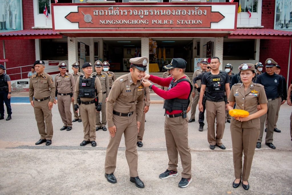 พร้อมนี้ได้ประดับเครื่องหมายยศ จ.ส.ต.ให้กับ ส.ต.อ.ธนกฤต สังสีมา ผบ.หมู่(ป.)สภ.หนองสองห้อง ที่ได้รับการเลื่อนยศจาก ส.ต.อ. เป็น จ.ส.ต. และรับมอบลูกฟุตบอลจำนวน 4 ใบ