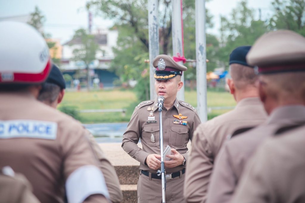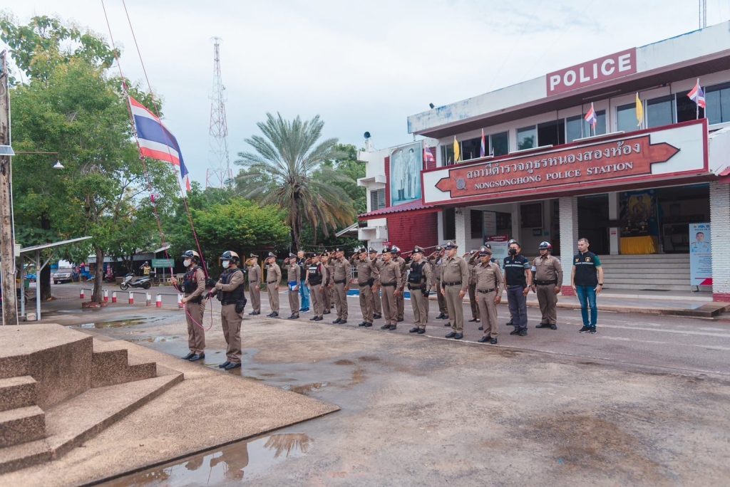 พร้อมด้วยข้าราชการตำรวจ สภ.หนองสองห้อง ร่วมเคารพธงชาติ สวดมนต์ไหว้พระ กล่าวบทปลงใจ ท่องอุดมคติตำรวจ ปฏิญาณตน ประชุมชี้แจงข้อราชการ ข้อสั่งการ และนโยบายผู้บังคับบัญชาให้ได้รับทราบและถือปฏิบัติ ดังนี้.-