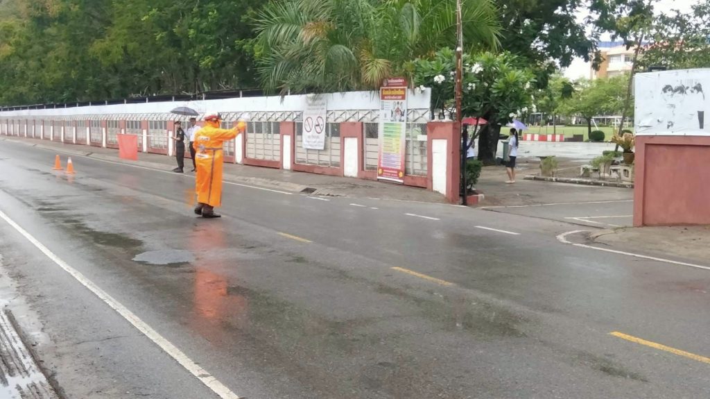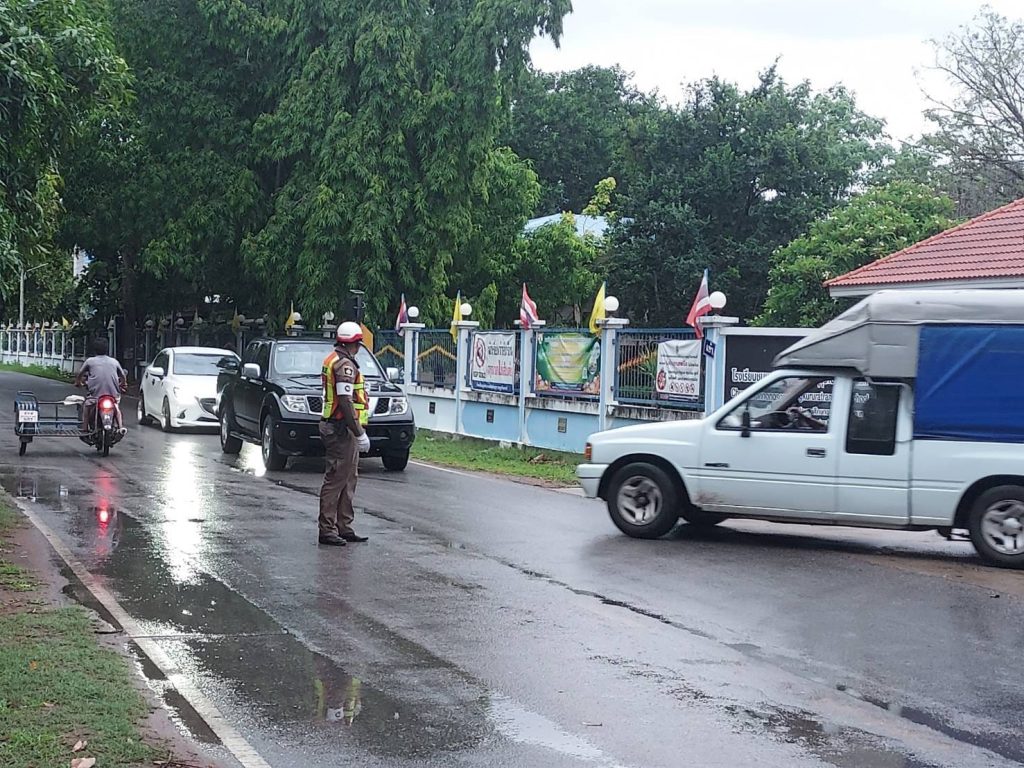 ฝนตกแบบนี้ อยากได้คนใจดีมากางร่มให้ งานจราจร สภ.หนองสองห้อ