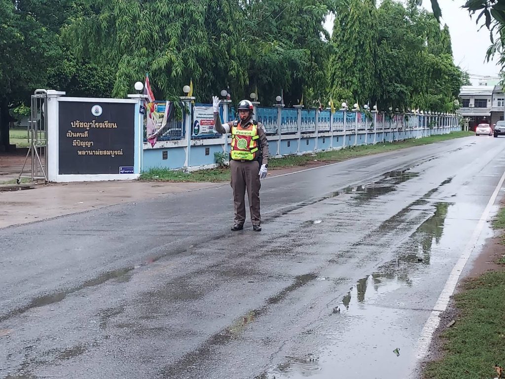📣📣เจ้าหน้าที่ตำรวจจราจร สภ.หนองสองห้อง ร่วมอำนวยความสะดวกด้านการจราจร บริเวณหน้าสถานศึกษาและจุดสำคัญในเขต ฝนตกถนนลื่นโปรดใช้ความระมัดระวัง นะครับ