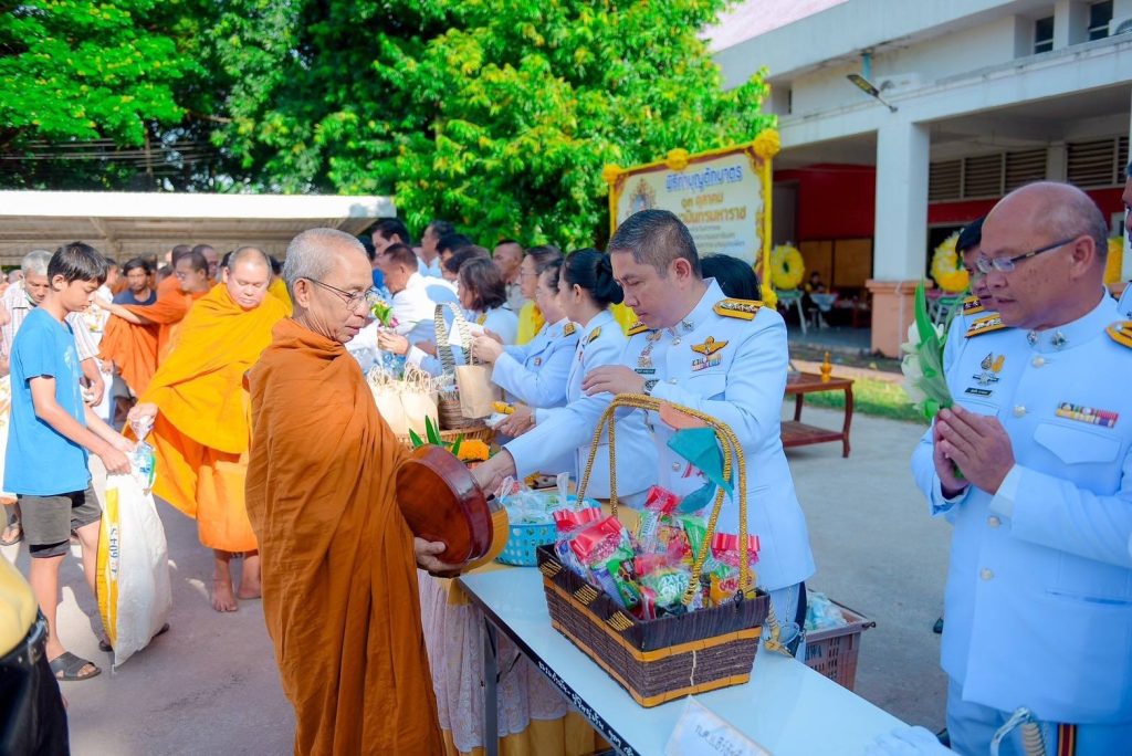 พร้อมด้วยข้าราชการตำรวจ สภ.หนองสองห้อง และครอบครัว ร่วมพิธีทำบุญตักบาตรถวายพระราชกุศล