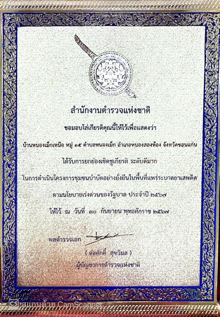 แพร่ระบาดยาเสพติดตามนโยบายเร่งด่วนของรัฐบาลยกย่องเชิดชูเกียรติใน “ระดับดีมาก”