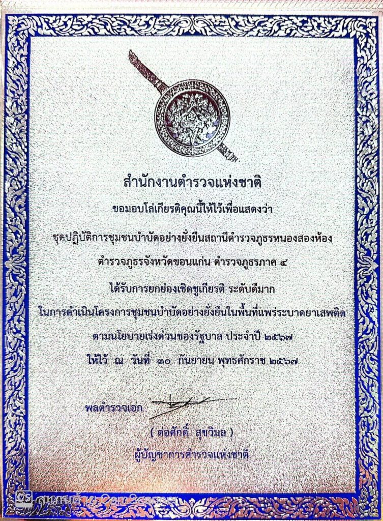 เป็นเกียรติยศและความภาคภูมิใจของพี่น้องชาวอำเภอหนองสองห้องในการขับเคลื่อนการป้องกันและปราบปรามยาเสพติดของจังหวัดขอนแก่นสร้างผลงานให้กับจังหวัดขอนแก่น ขอขอบคุณ