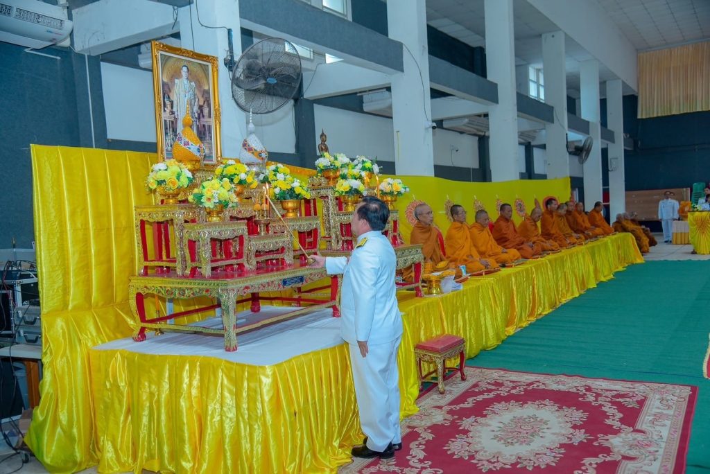 🔶️ เวลา 07.30 น. พิธีทำบุญตักบาตรถวายพระราชกุศล ณ บริเวณพิธีหอประชุมอำเภอหนองสองห้อง