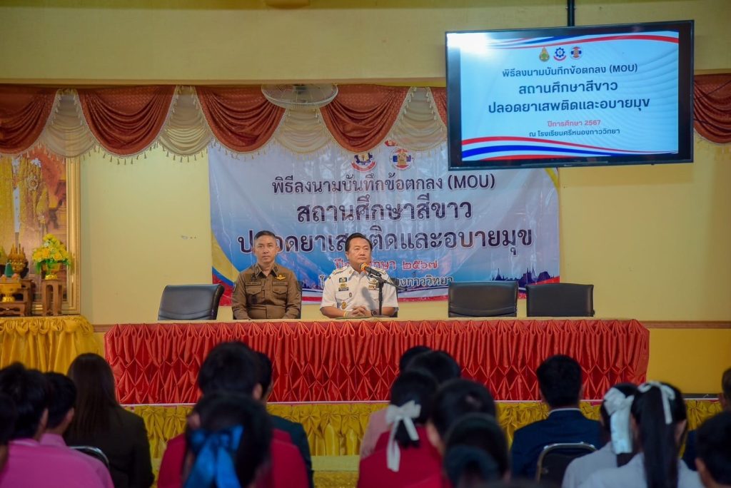 ร่วมลงนามบันทึกข้อตกลงความร่วมมือ(MOU)เครือข่ายโครงการสถานศึกษาสีขาว ปลอดสารเสพติดและอบายมุขของโรงเรียนศรีหนองกาววิทยา