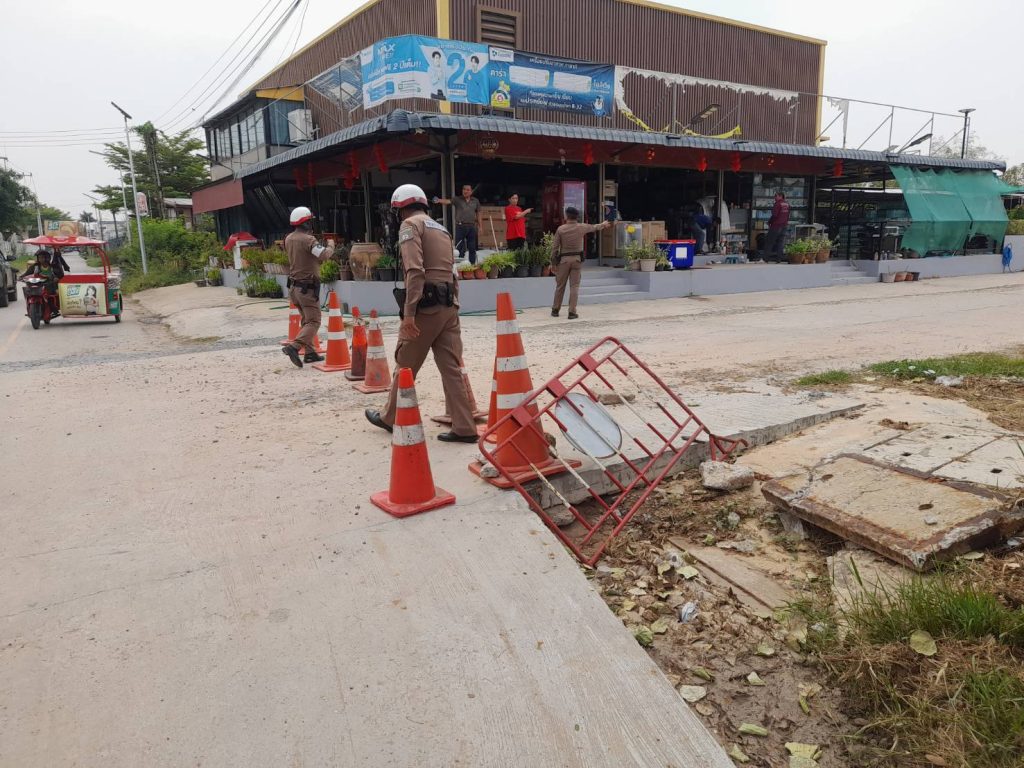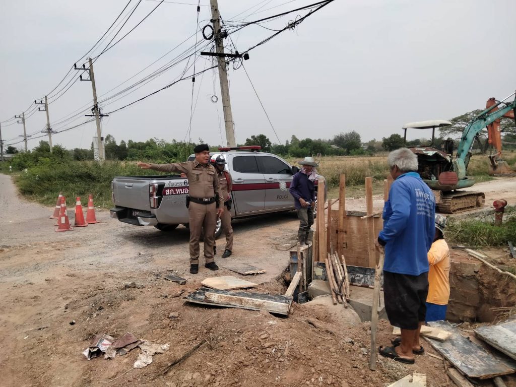 สายตรวจจราจร ออกตรวจสอบในเขตพื้นที่รับผิดชอบที่มีจุดซ่อมสร้างถนนบริเวณถนนประชาอุทิศ