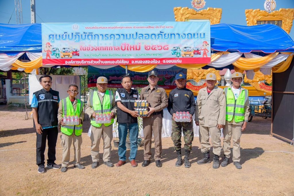 และจุดตรวจบริการประชาชนตลาดลานทอง พบเจ้าหน้าที่ตำรวจสภ.หนองสองห้อง ,เจ้าหน้าที่โรงพยาบาลหนองสองห้อง,เจ้าหน้าที่องค์การบริหารส่วนตำบล ,กำนัน ,ผู้ใหญ่บ้าน ,งานป้องกันเทศบาลตำบลหนองสองห้อง และเจ้าหน้าที่ อปพร. อยู่ปฏิบัติหน้าที่ ได้กำชับการปฏิบัติให้มีความพร้อมในทุกๆ ด้าน เพื่อให้การปฏิบัติในการดูแล ช่วยเหลือ บริการ พี่น้องประชาชนที่เดินทางมาท่องเที่ยวและกลับภูมิลำเนาให้ได้รับความปลอดภัยทั้งการจราจร ชีวิตและทรัพย์สิน รวมถึงการดูแลรักษาความสงบเรียบร้อย เป็นไปด้วยความเรียบร้อยทุกส่วน พร้อมนี้ได้มอบเครื่องดื่มและสิ่งของแก่เจ้าหน้าที่ผู้ปฏิบัติ ณ จุดตรวจ เพื่อเป็นขวัญกำลังใจในการปฏิบัติหน้าที่พร้อมกล่าวขอบคุณและให้กำลังใจทุกๆ ท่านในการที่ช่วยกันปฏิบัติหน้าที่