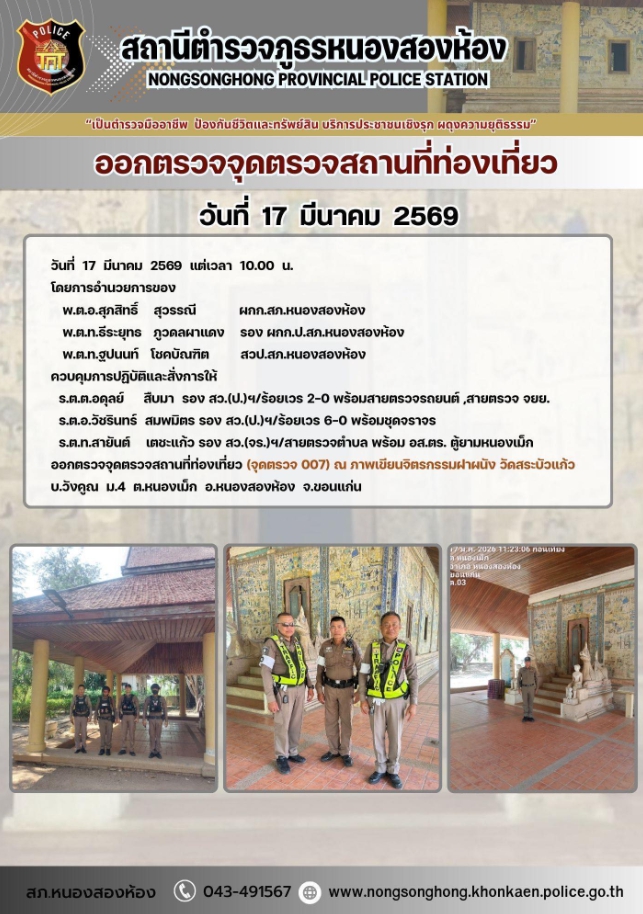 ออกตรวจจุดสถานที่ท่องเที่ยว 17 มีนาคม 2569