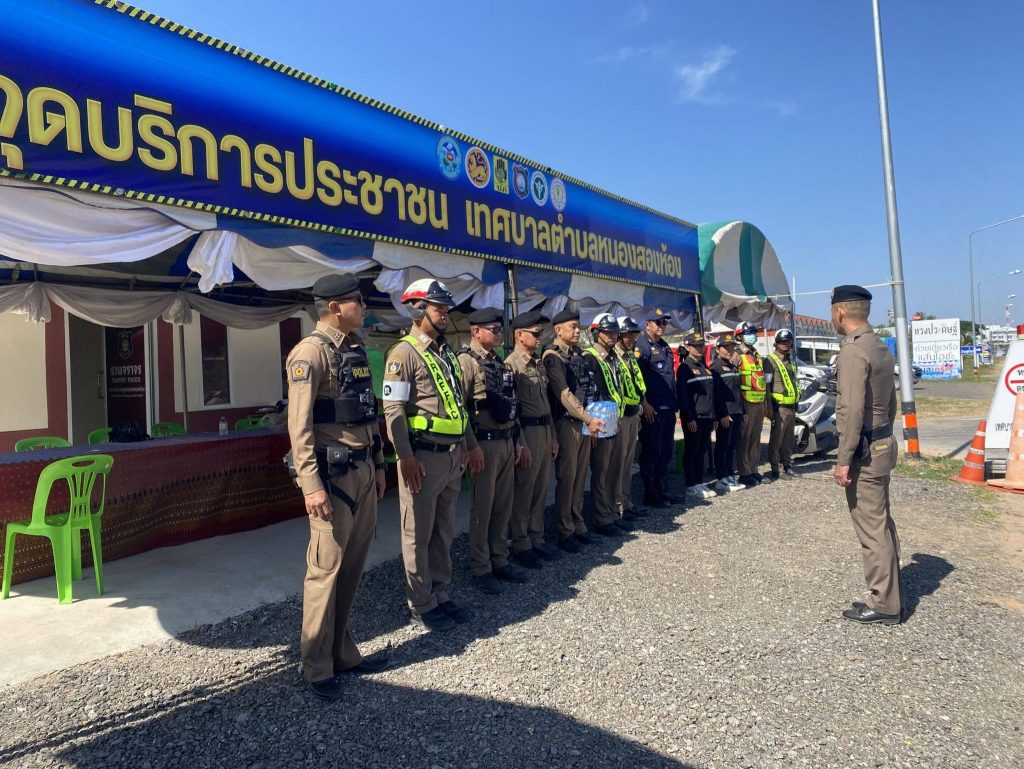 พบเจ้าหน้าที่ตำรวจชุดจราจร, ชุดสายตรวจ ,เจ้าหน้าที่ฝ่ายปกครอง อ.หนองสองห้อง และ อปพร.เทศบาลตำบลหนองสองห้อง อยู่ปฏิบัติหน้าที่ และให้การต้อนรับ