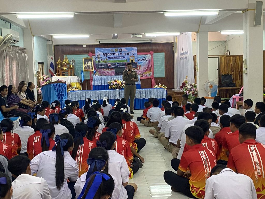 พร้อมด้วยเจ้าหน้าที่ตำรวจ สภ.หนองสองห้อง จังหวัดขอนแก่น ออกประชาสัมพันธ์ศูนย์รับแจ้งเหตุฉุกเฉิน ๑๙๑ ของ ตำรวจภูธรจังหวัดขอนแก่น การรับแจ้งเหตุด่วน เหตุร้าย จากประชาชนทั่วไป รวมถึงรับแจ้งเบาะแสอาชญากรรมอื่นๆ และประชาสัมพันธ์ป้องกันและให้คำแนะนำไม่ให้มีการโทรก่อกวน ศูนย์รับแจ้งเหตุฉุกเฉิน ๑๙๑ ซึ่งเป็นปัญหาและอุปสรรคต่อการปฏิบัติงานของเจ้าหน้าที่รับแจ้งเหตุ ณ โรงเรียนบ้านหนองกุงโนนทัน