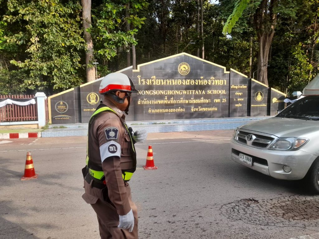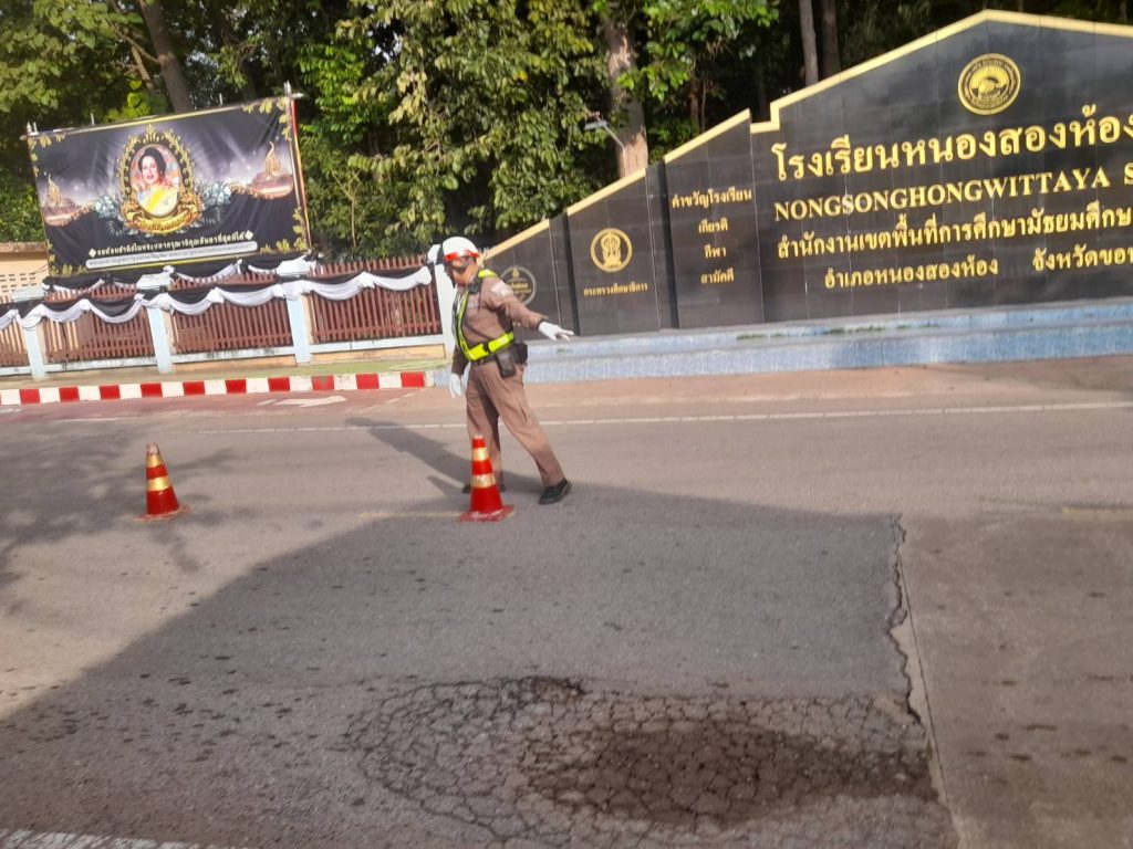 🔸ร.ต.อ.บุญมี พลนงค์ รอง สว.(ป.)สภ.หนองสองห้อง ปฏิบัติหน้าที่ร้อยเวรจราจร พร้อมชุดจราจร และนักเรียนนายสิบตำรวจฝึกงาน อำนวยความสะดวกด้านการจราจรหน้าสถานศึกษาต่างๆ ในเขตพื้นที่รับผิดชอบ อ.หนองสองห้อง จว.ขอนแก่น ในชั่วโมงเร่งด่วน เหตุการณ์ทั่วไปปกติ