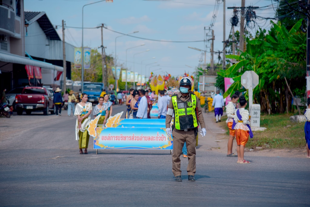ควบคุมสั่งการให้ ร.ต.อ.สมพร สุดสะอาด รอง สวป.สภ.หนองสองห้องพร้อมด้วยชุดจราจร อำนวยความสะดวกจราจรขบวนแห่งานประเพณีบุญกุ้มข้าวใหญ่ และของดีอำเภอหนองสองห้อง ประจำปี 2566 เพื่อให้เกิดเป็นระเบียบเรียบร้อยและความปลอดภัยในการใช้รถใช้ถนนและผู้ร่วมขบวนแห่