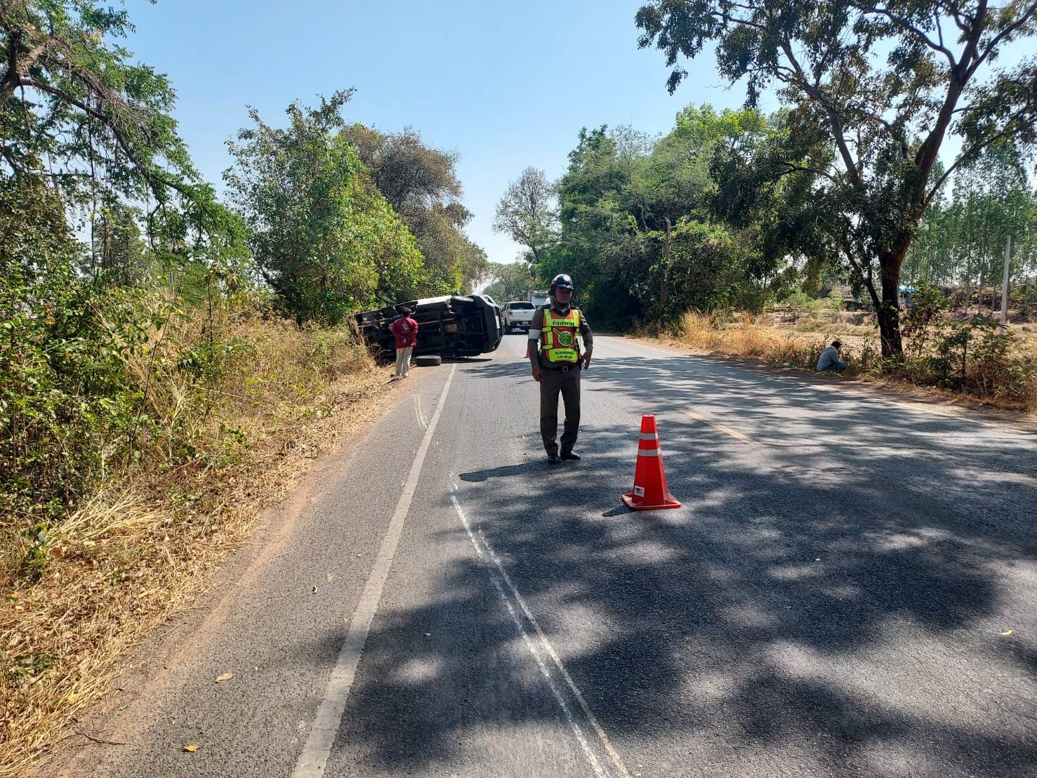 ร.ต.ท.บุญมี พลนงค์ ร้อยเวรจราจร (60) พร้อมชุดจราจร อำนวยความสะดวกจราจร รถยนต์พลิกคว่ำกีดขวางการจราจร ไม่มีผู้ได้รับบาดเจ็บ ไม่มีทรัพย์สินทางราชการเสียหาย แจ้งร้อยเวรเพื่อดำเนินการต่อไป