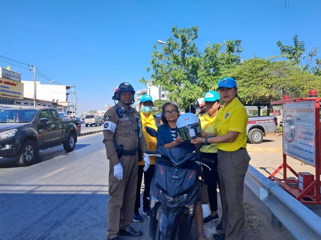 รอง สว.(ป.)สภ.หนองสองห้อง ปฎิบัติหน้าที่ร้อยเวร60 พร้อมด้วยชุดจราจร และประชาชนจิตอาสา ร่วมกันแจกหมวกนิรภัยแก่ประชาชนที่ขับขี่รถจักรยานยนต์สัญจรตาม #โครงการจิตอาสาจราจร #รณรงค์ขับขี่ปลอดภัยสวมหมวกนิรภัย เพื่อลดอุบัติเหตุจราจร ในช่วงเทศกาลปีใหม่ 2568 ณ จุดตรวจสะพานลอย ถนนเจนจบทิศ