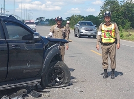 งานป้องกันปราบปรามงานสืบสวนงานจราจร อำนวยความสะดวกการจราจรกรณีอุบัติเหตุรถยนต์กระบะชนกับรถยนต์กระบะ