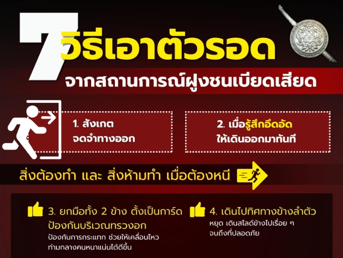 ข่าวประชาสัมพันธ์ 7 วิธีเอาตัวรอด จากสถานการณ์ฝูงชนเบียดเสียด Save เก็บไว้ ไปเที่ยวงาน #ลอยกระทง 256