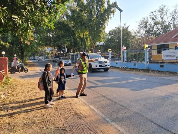 งานป้องกันปราบปราม/งานสืบสวน/งานจราจร อำนวยความสะดวกจราจรชั่วโมงเร่งด่วน บริเวณหน้าสถานศึกษา วันนี้(