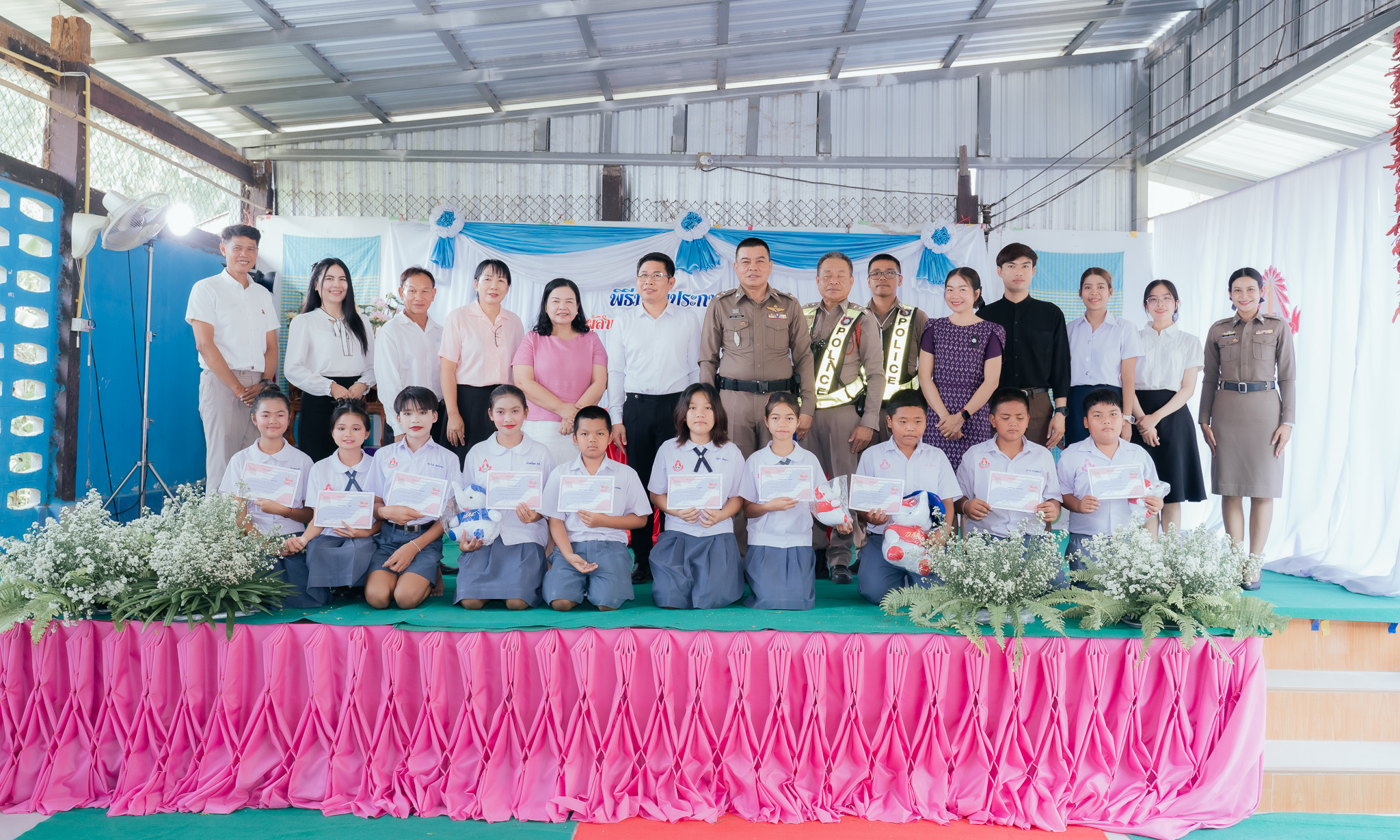 งานป้องกันปราบปราม/งานสืบสวน/งานจราจร พิธีปิดและมอบใบประกาศนียบัตรเด็กนักเรียนที่จบหลักสูตรโครงการกา