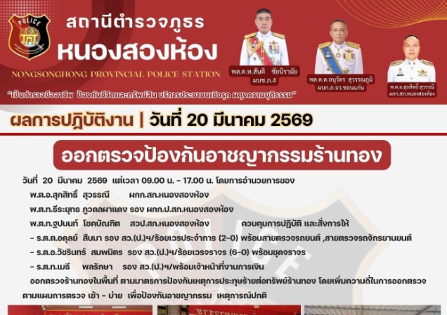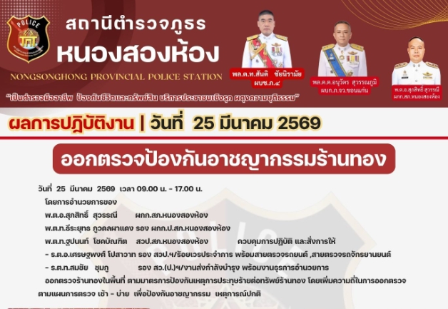 ออกตรวจป้องกันอาชญากรรมร้านทองในพื้นที่