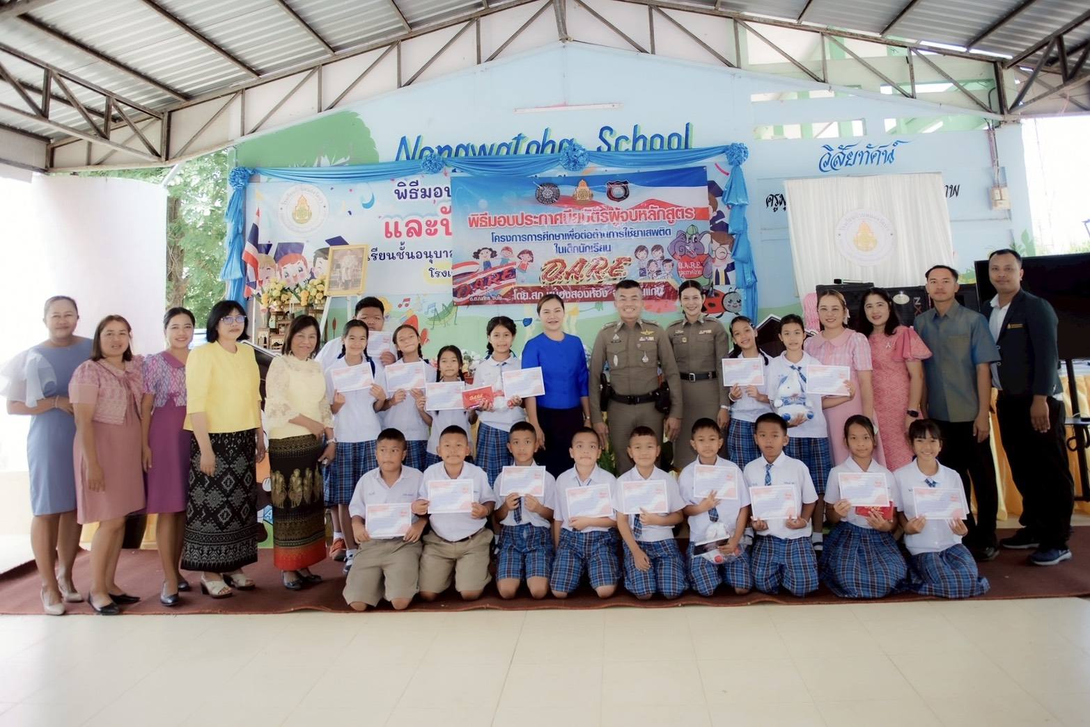 งานป้องกันปราบปราม/งานสืบสวน/งานจราจร พิธีปิดและมอบใบประกาศนียบัตรเด็กนักเรียนที่จบหลักสูตรโครงการกา