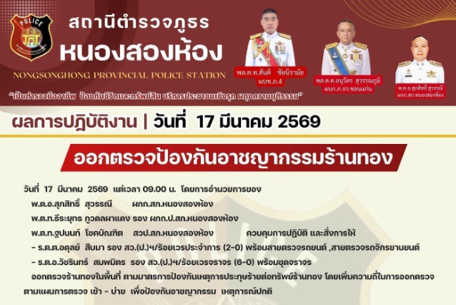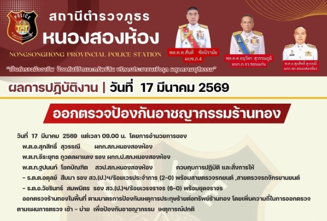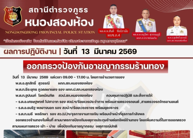 ออกตรวจป้องกันอาชญากรรมร้านทองในพื้นที่