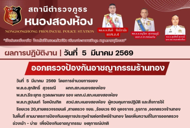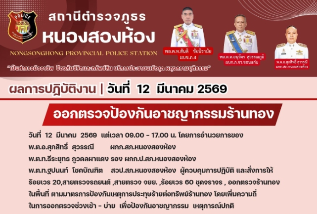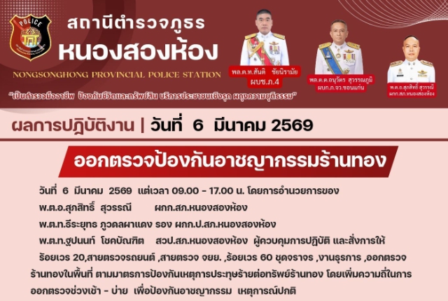 ออกตรวจป้องกันอาชญากรรมร้านทองในพื้นที่