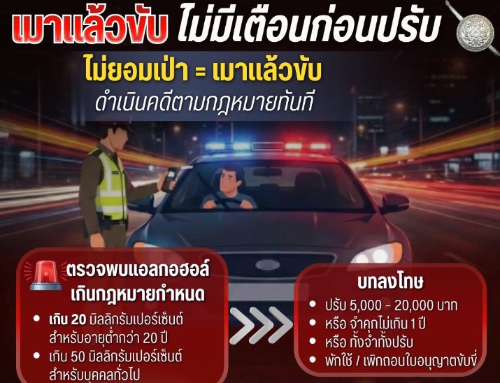 ข่าวประชาสัมพันธ์ เมาแล้วขับ” อันตรายต่อตนเองและผู้อื่น ตำรวจจับกุม ดำเนินคดีทันที ไม่เข้าข่าย “เตือ