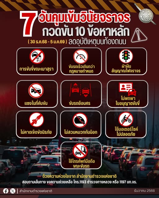 🚨7 วันคุมเข้ม ลดอุบัติเหตุ “ปีใหม่ 2569”