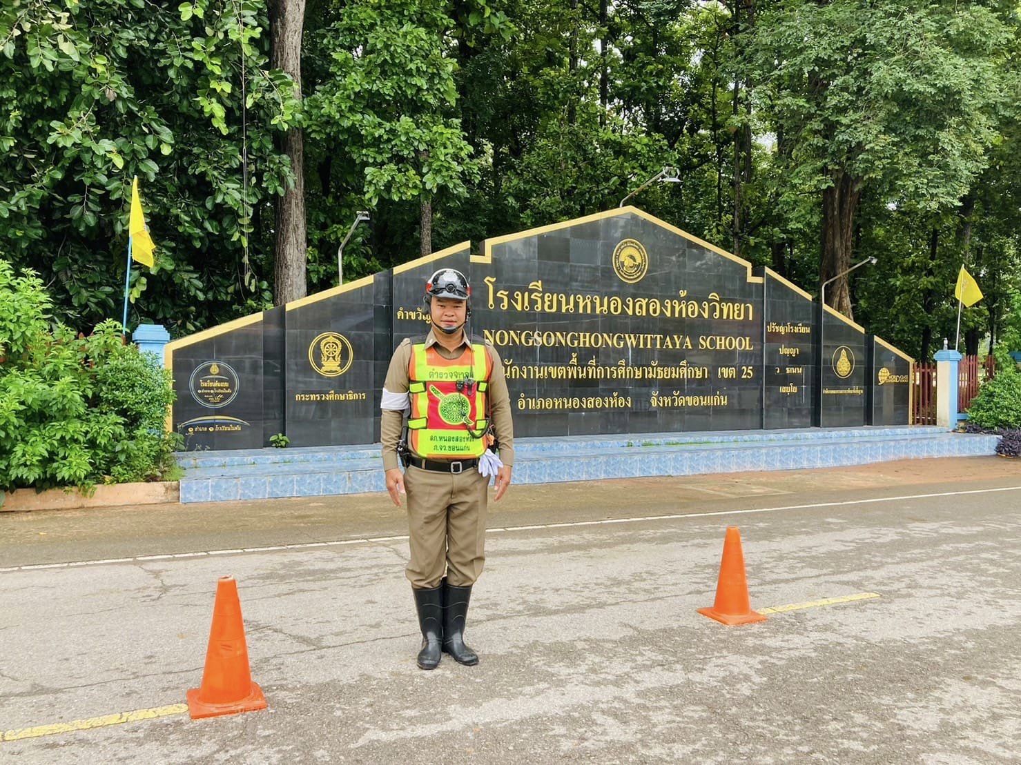 งานป้องกันปราบปรามงานสืบสวนงานจราจร ปฏิบัติหน้าที่อำนวยความสะดวกจราจรแก่ครูและนักเรียนโรงเรียนชุมชนห