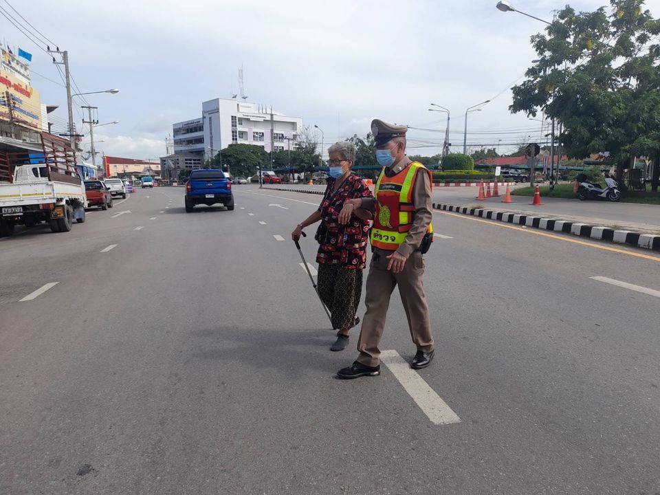 งานป้องกันปราบปรามงานสืบสวนงานจราจร ช่วยเหลือพาคุณยายข้ามถนน ถนนเจนจบทิศ อ.หนองสองห้อง #จับมือผมไว้แ
