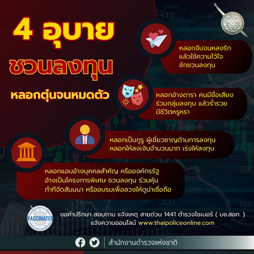 ข่าวประชาสัมพันธ์ 4 อุบาย ชวนลงทุน หลอกต้มตุ๋นจนหมดตัว 4 อุบาย ชวนลงทุนหลอกต้มตุ๋นจนหมดตัว 1 –